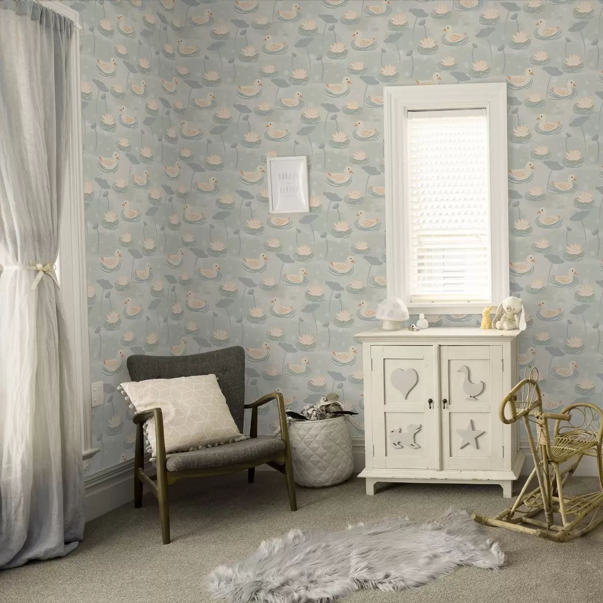 Behang Eendjes in een vijver met lotussen Nr. a00079