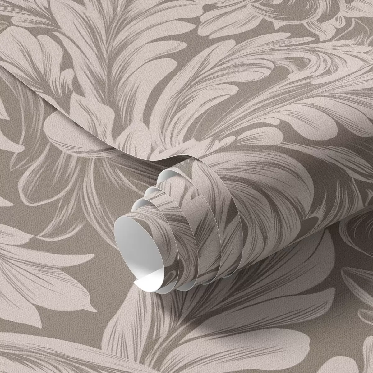 Behang Crème bladeren op een bruine achtergrond Nr. a00135v3