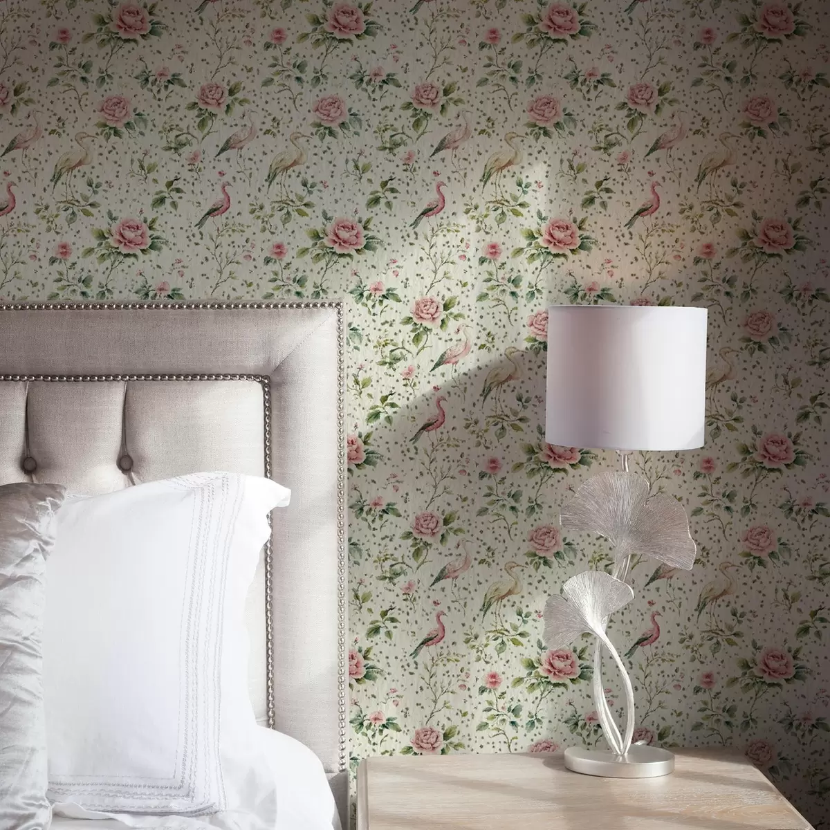 Behang Pastelroze rozen en vogels in shabby chic stijl Nr. a00201