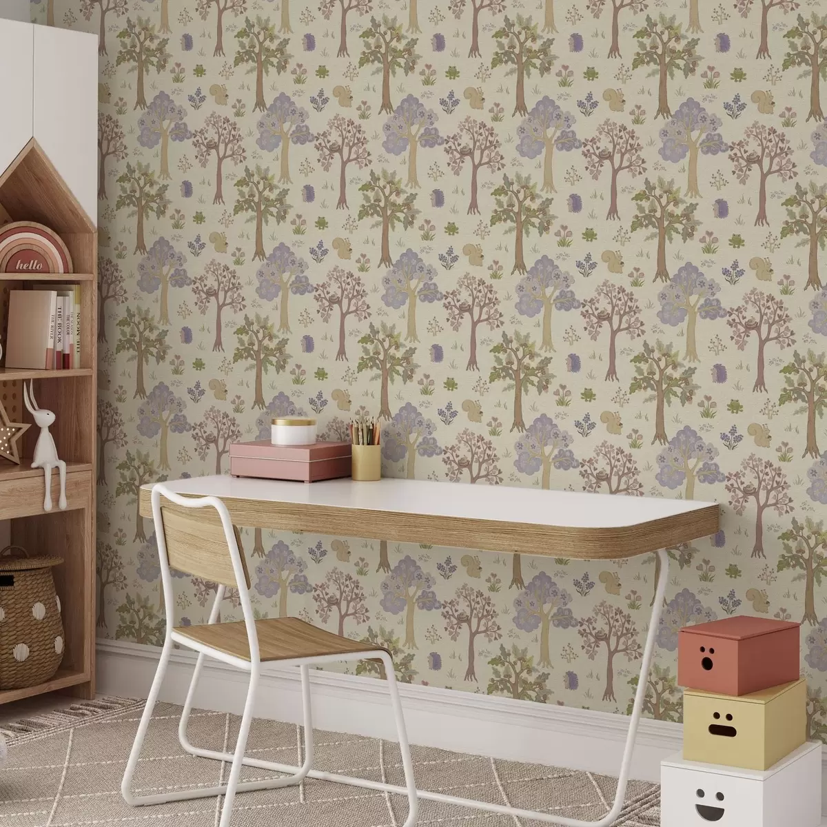 Behang Sprookjesbos met dieren in kinderstijl Nr. a00264