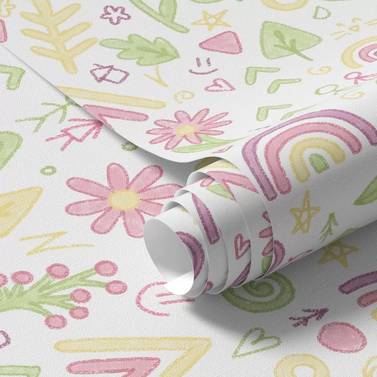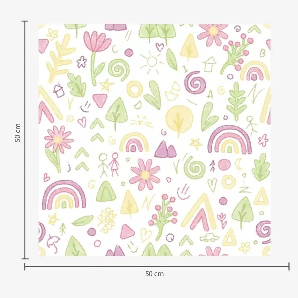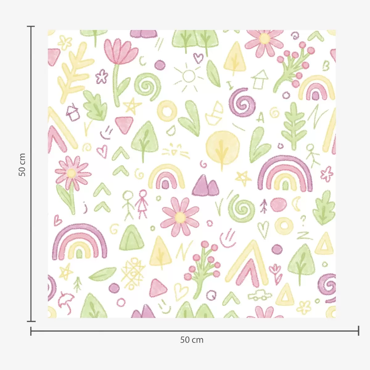 Behang Kindertekening met regenbogen, bloemen en bomen Nr. a00296