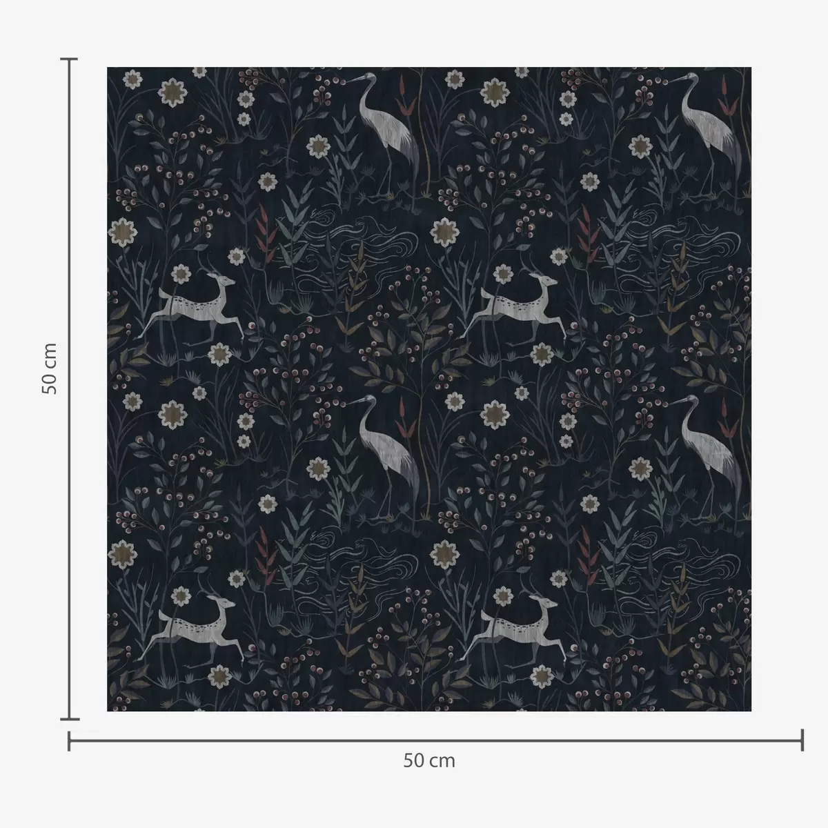 Behang Donkere achtergrond met witte vogels en herten Nr. a00363