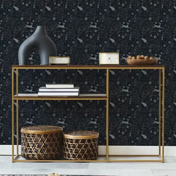 Behang Donkere achtergrond met witte vogels en herten Nr. a00363