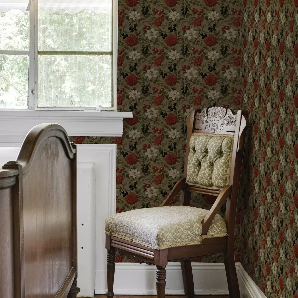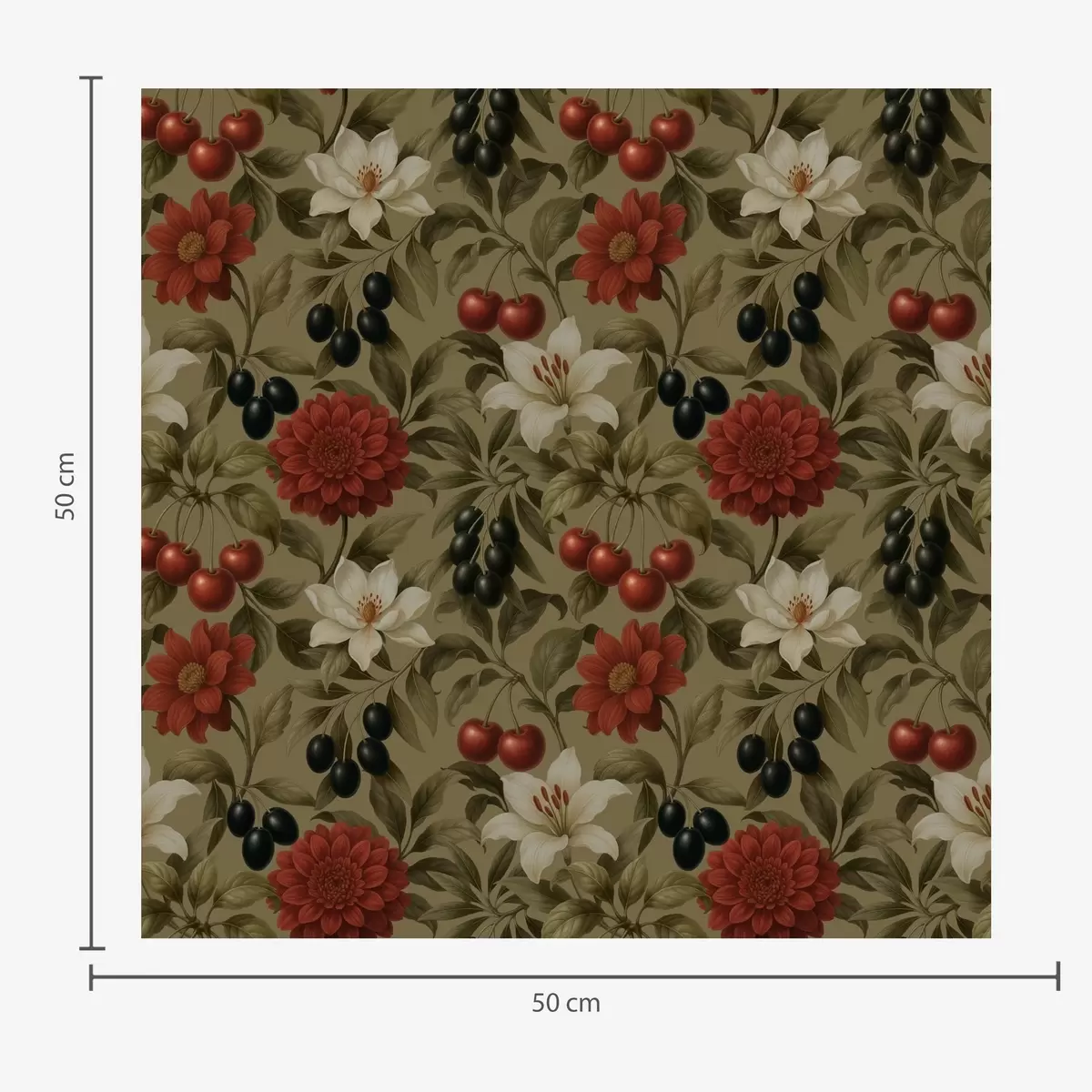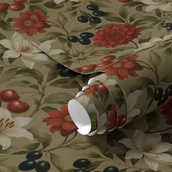 Behang Kersen, bloemen en zwarte olijven Nr. a00384