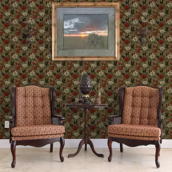 Behang Kersen, bloemen en zwarte olijven Nr. a00384