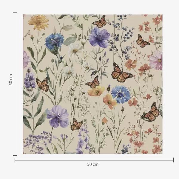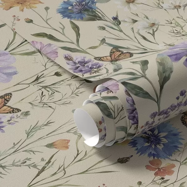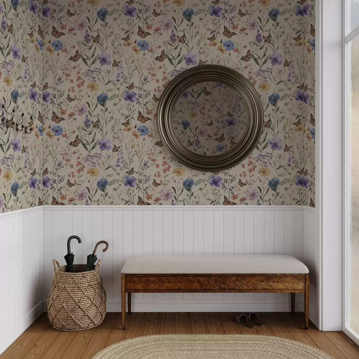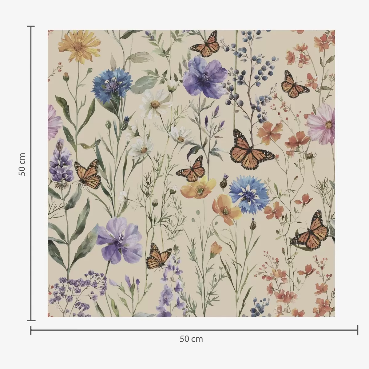 Behang Wilde bloemen en vlinders in zachte aquarelstijl Nr. a00389