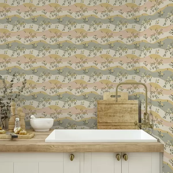 Behang Golvende weidebloemen in pastel minimalistische stijl Nr. a00396