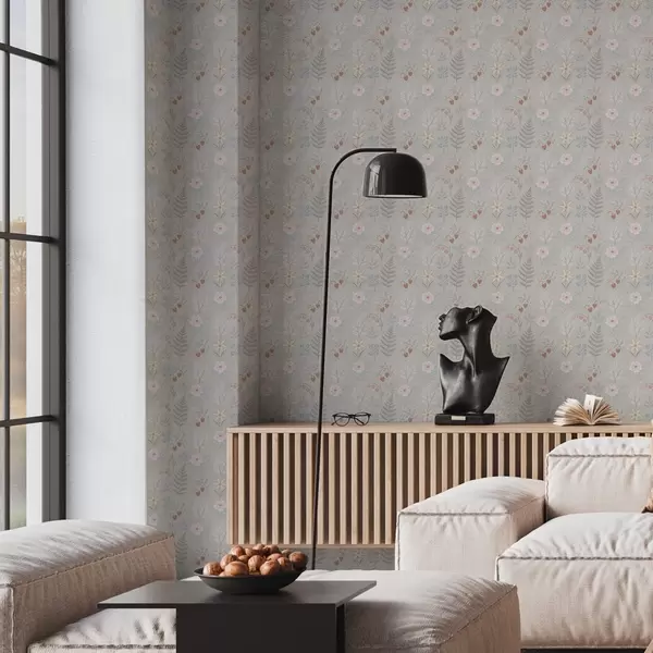 Behang Pastelkleurige bloemen en bessen op een lichtgrijze achtergrond Nr. a00406