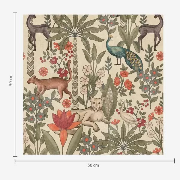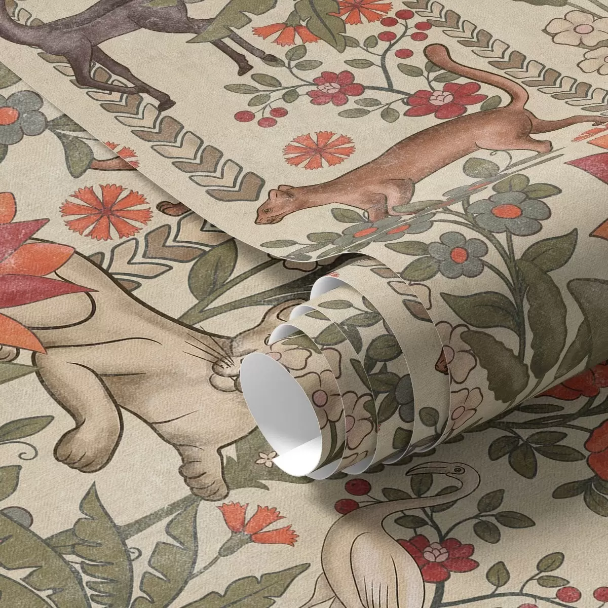 Behang Retro stijl: Dieren en bloemen op een vintage achtergrond Nr. a00431