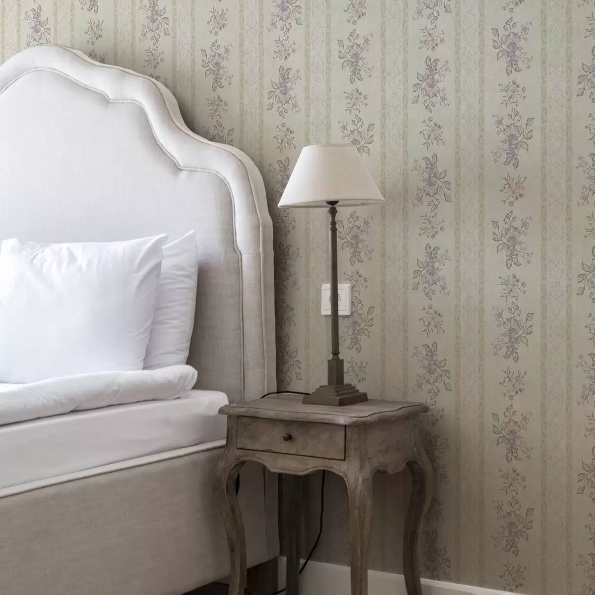 Behang Vintage bloemen op een gestreepte achtergrond met ornament Nr. a00440