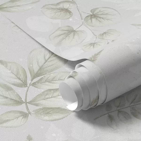 Behang Lichte aquarelbladeren met spateffect op een grijze achtergrond Nr. a00446