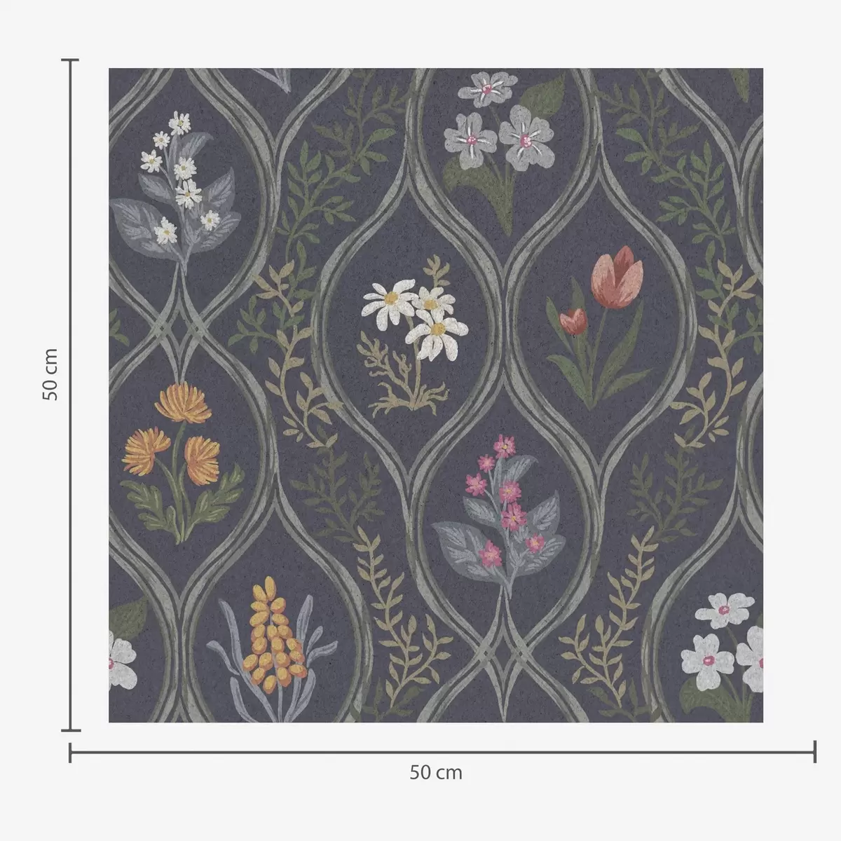 Behang Donker vintage frame met kleurrijke tuinbloemen Nr. a00454
