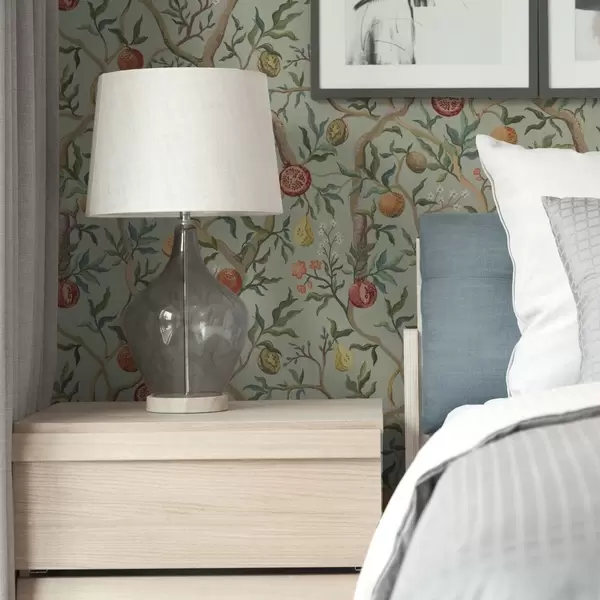 Behang Granaatappelvruchten, peren en bloemen op een lichtgroene achtergrond Nr. a00465