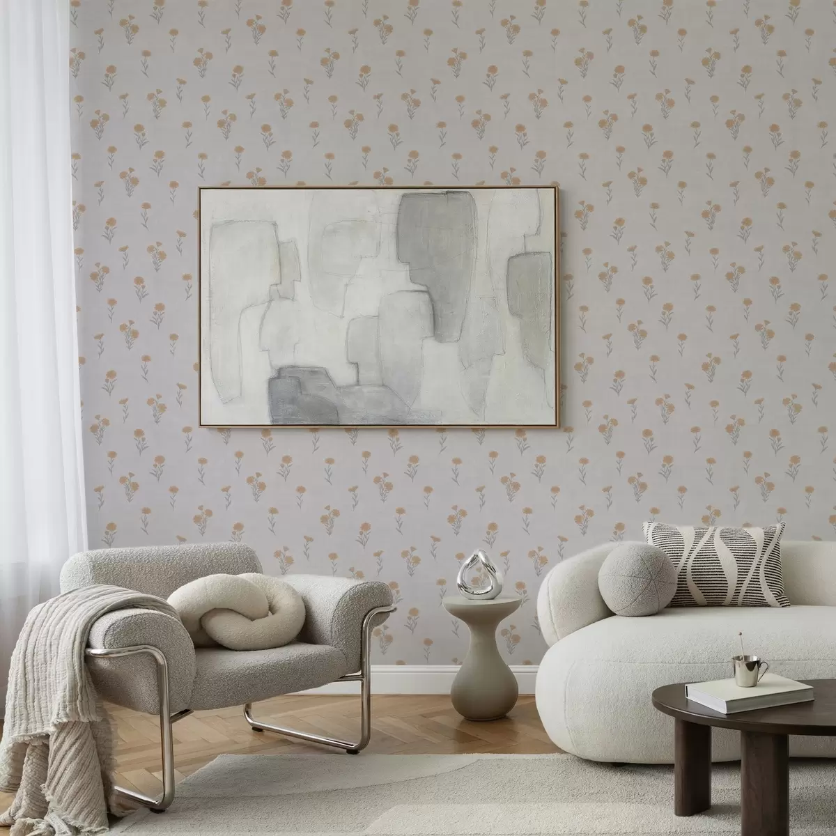 Behang Kleine oranje bloemen op een lichtgrijze achtergrond Nr. a00486