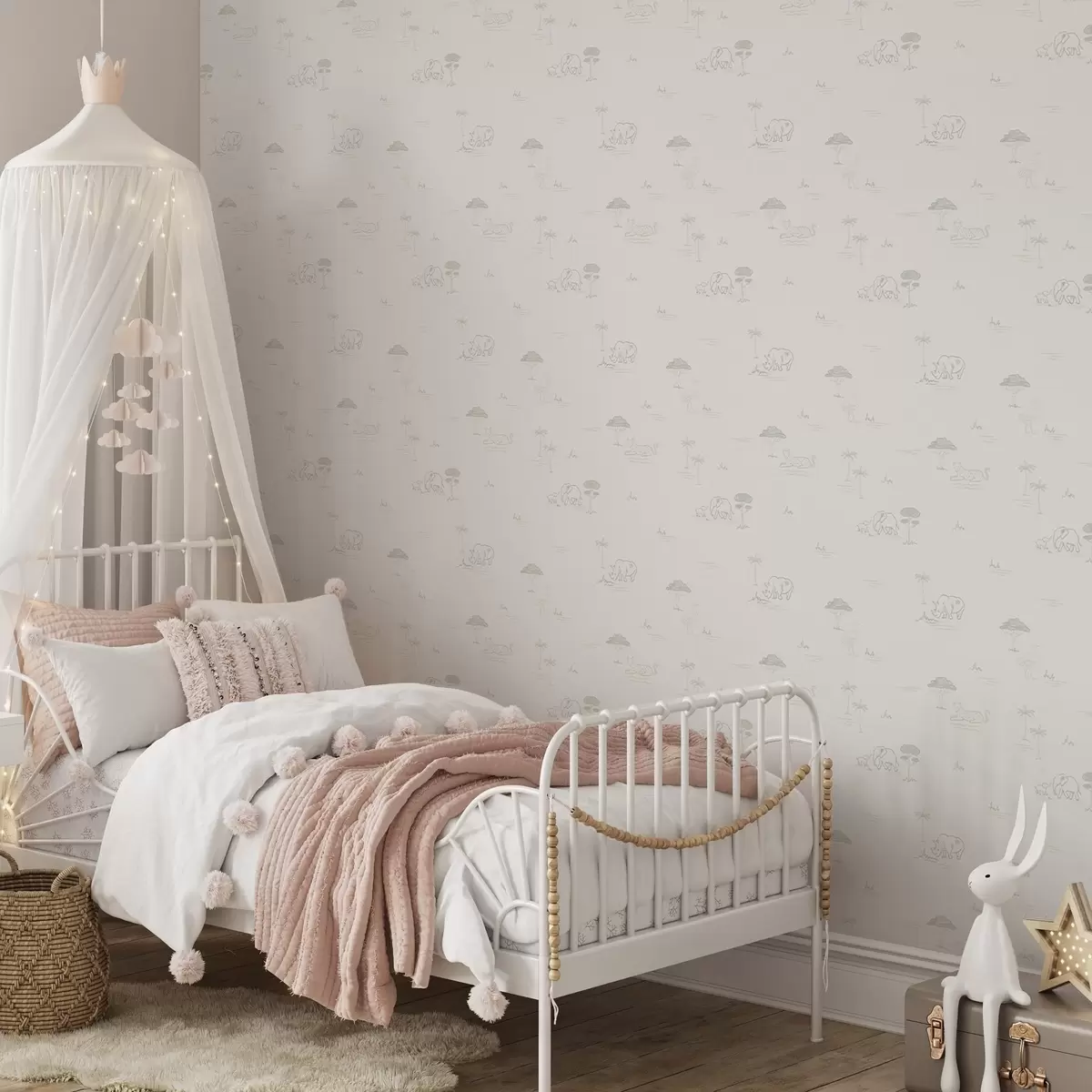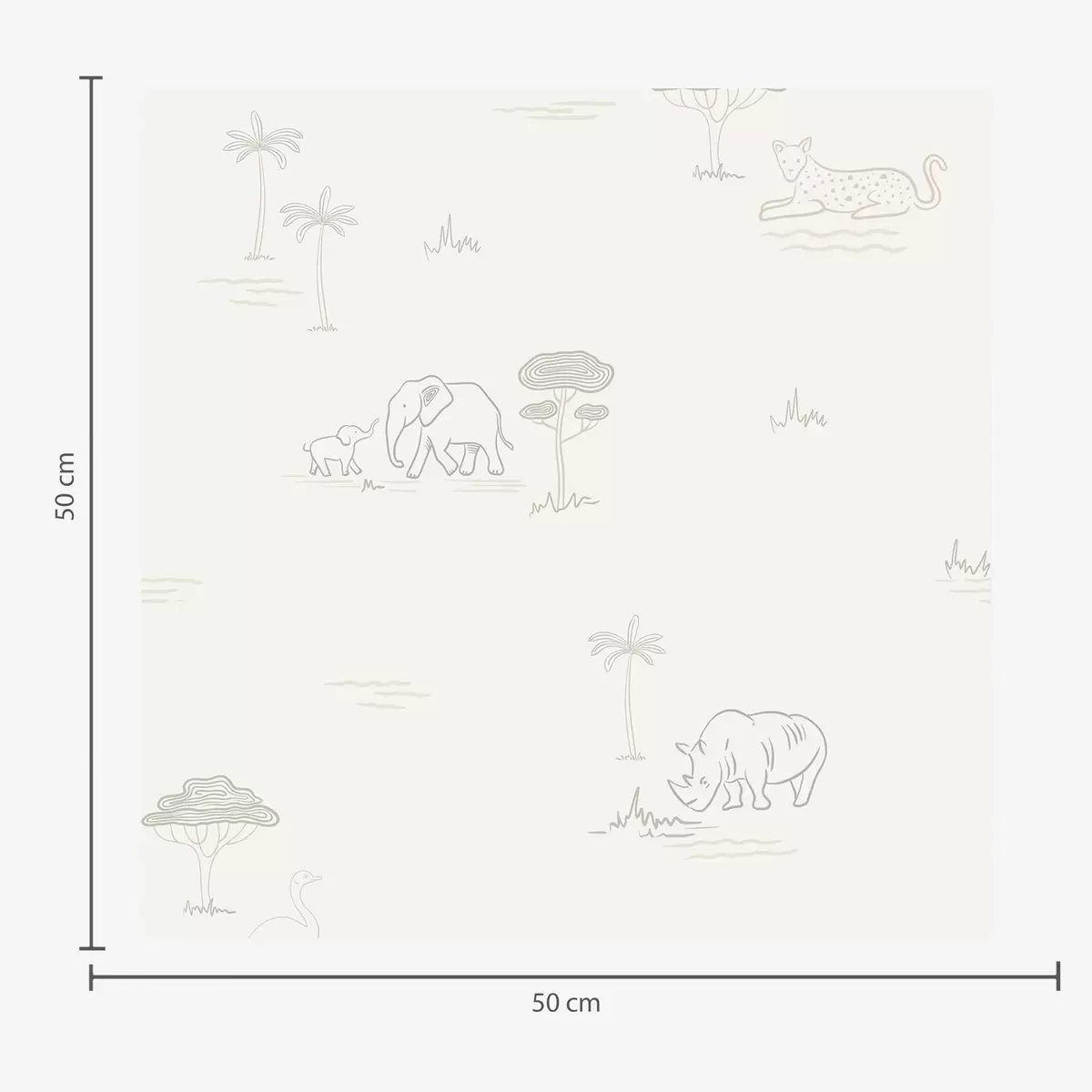 Behang Minimalistische safari: olifanten, neushoorns, luipaarden en palmbomen Nr. a00492