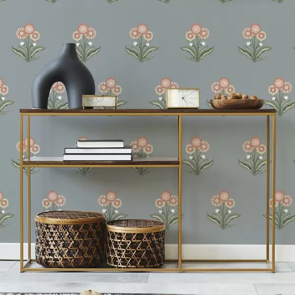 Behang Gestileerde bloemen op een grijsblauwe achtergrond, warm kleurenpalet Nr. a00494