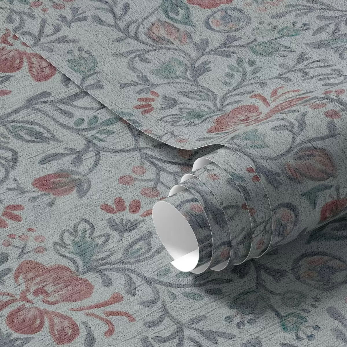 Behang Pastelkleurige bloemen op grijsblauw Nr. a00499
