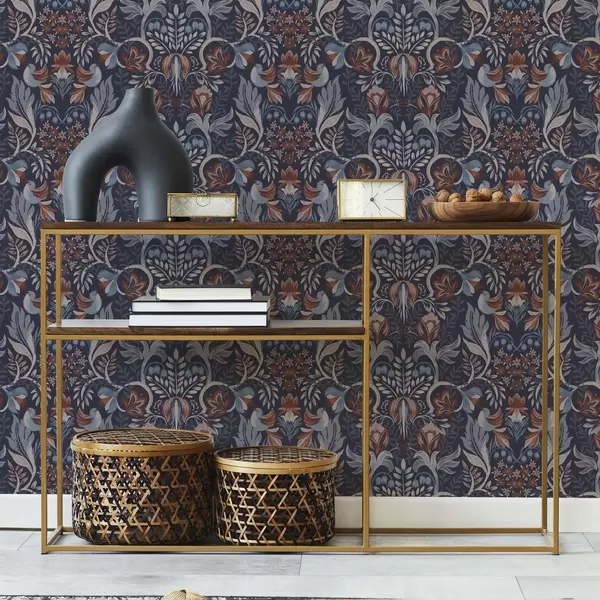 Behang Volksbloemen en vogels op een donkerblauwe achtergrond Nr. a00502