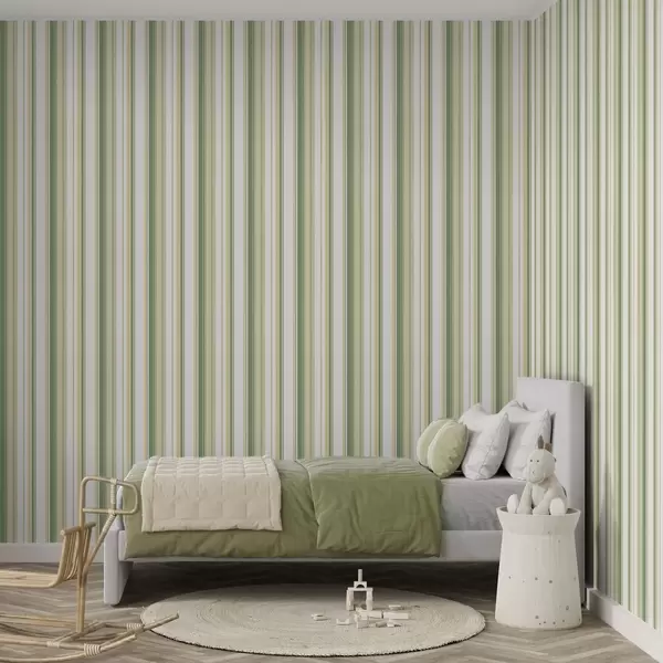 Behang Groene en beige strepen met gele accentlijnen Nr. a00531
