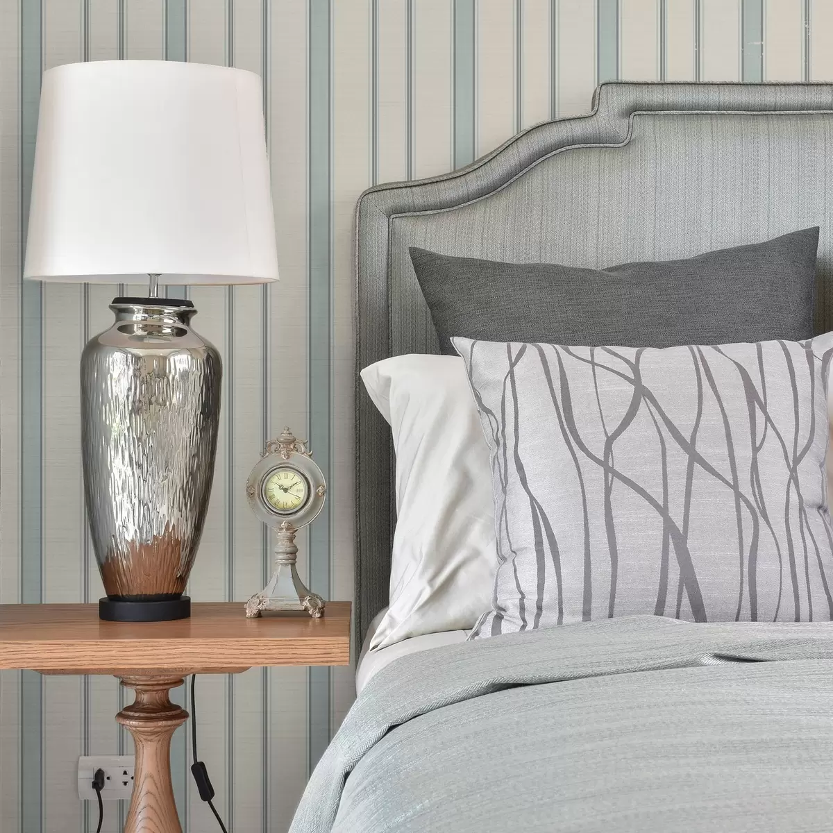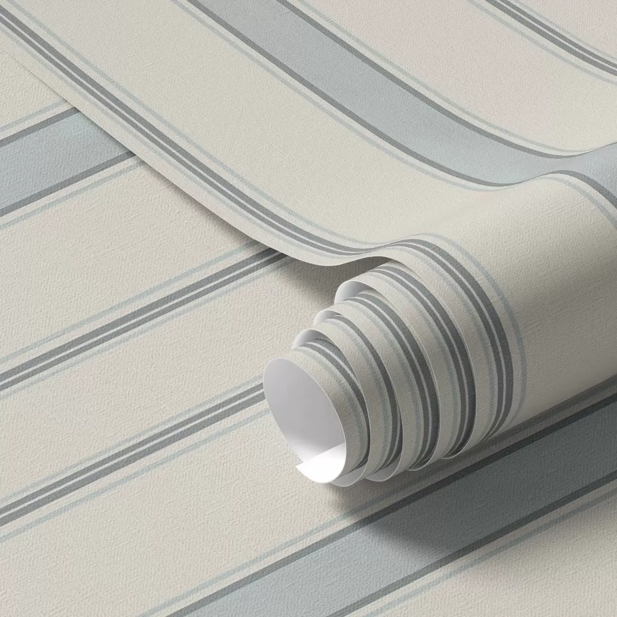 Behang Blauwe en grijze strepen op een crèmekleurige achtergrond Nr. a00555
