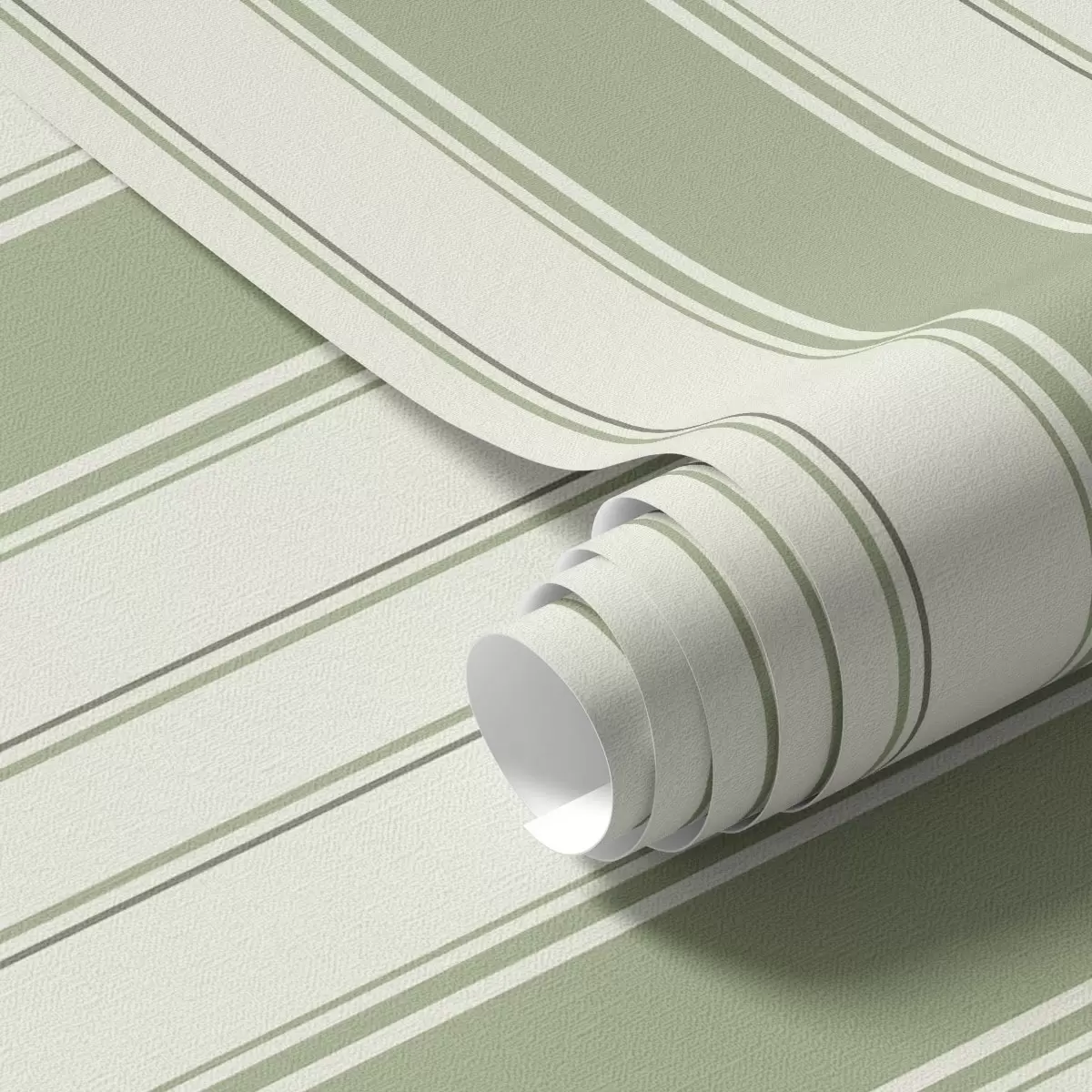 Behang Crème achtergrond met egale groene verticale strepen Nr. a00560