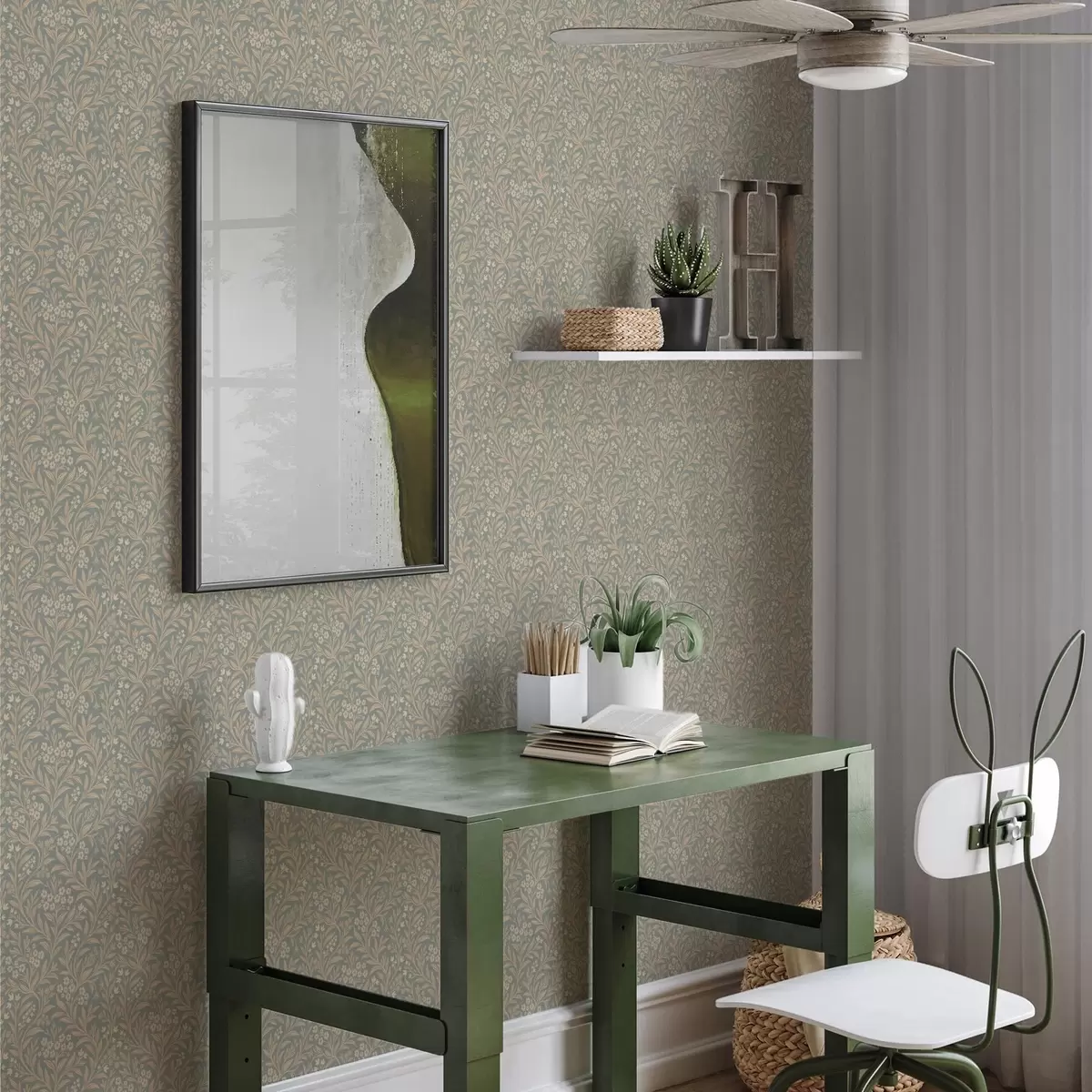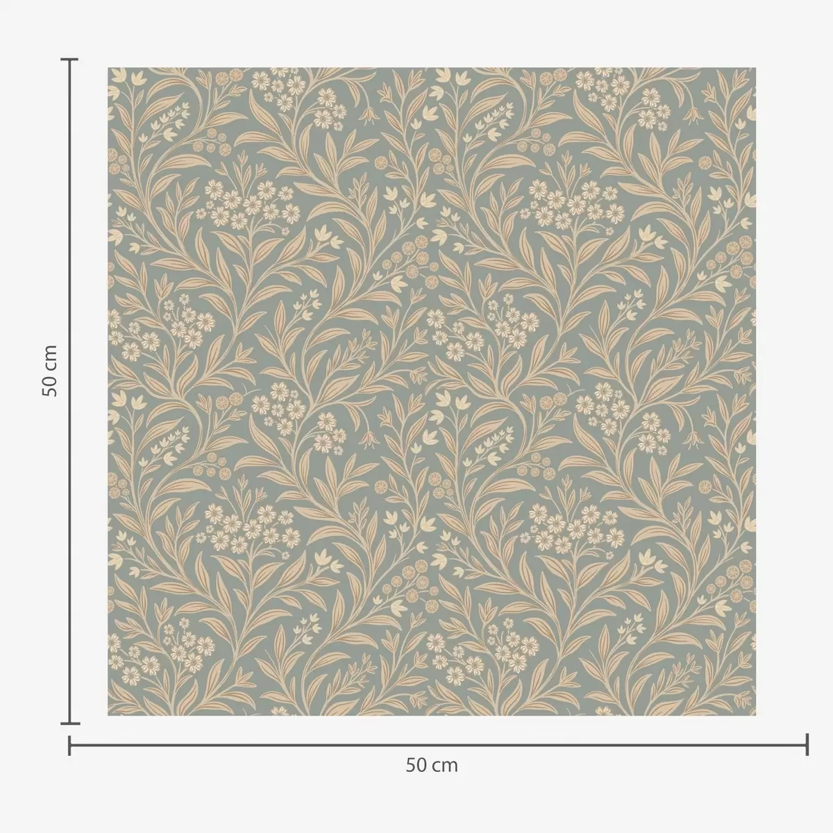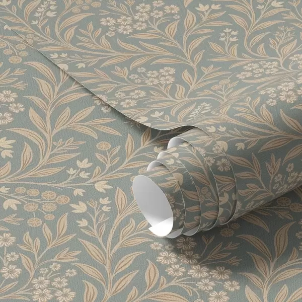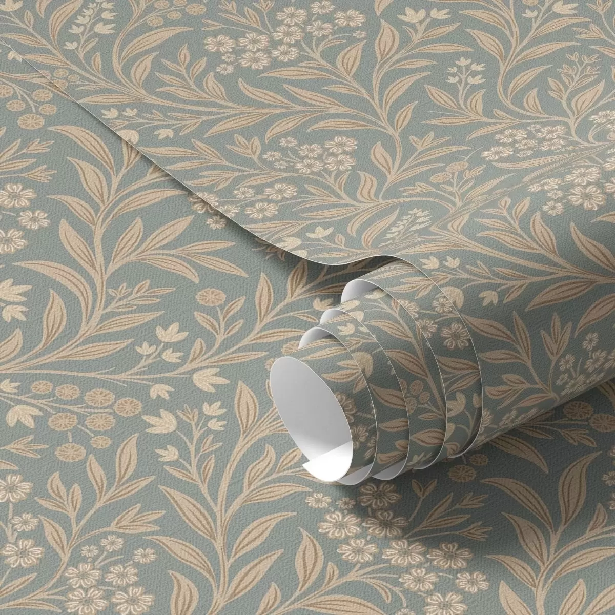 Behang Morris-stijl: beige takken op een grijsgroene achtergrond Nr. a00569