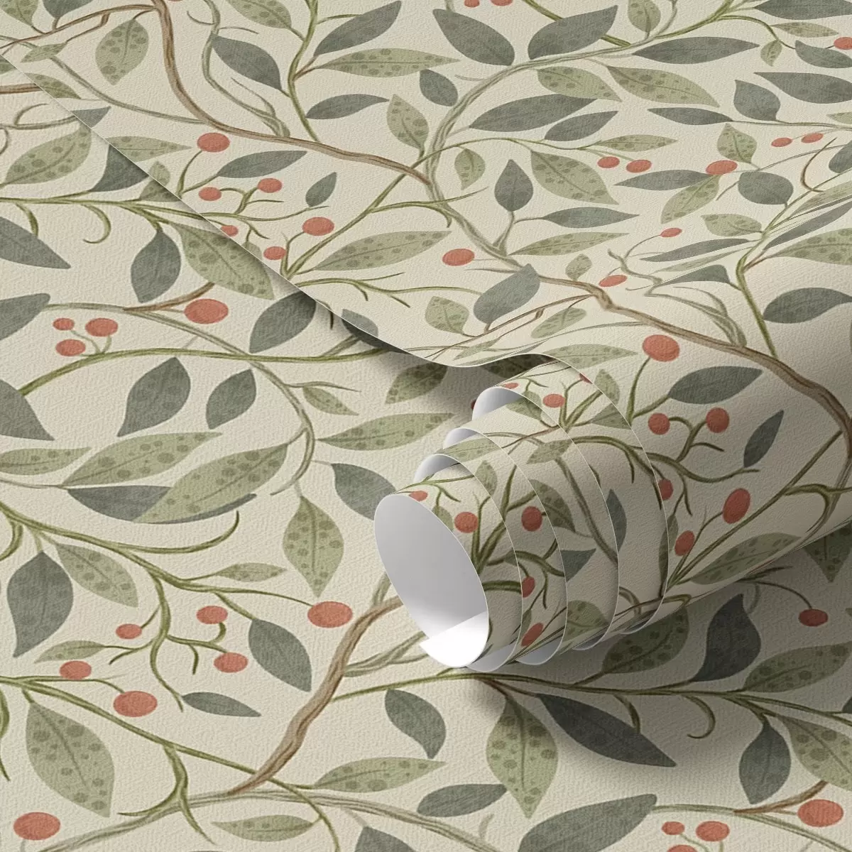 Behang Olijftakken met bessen op een warme, lichte achtergrond Nr. a00573