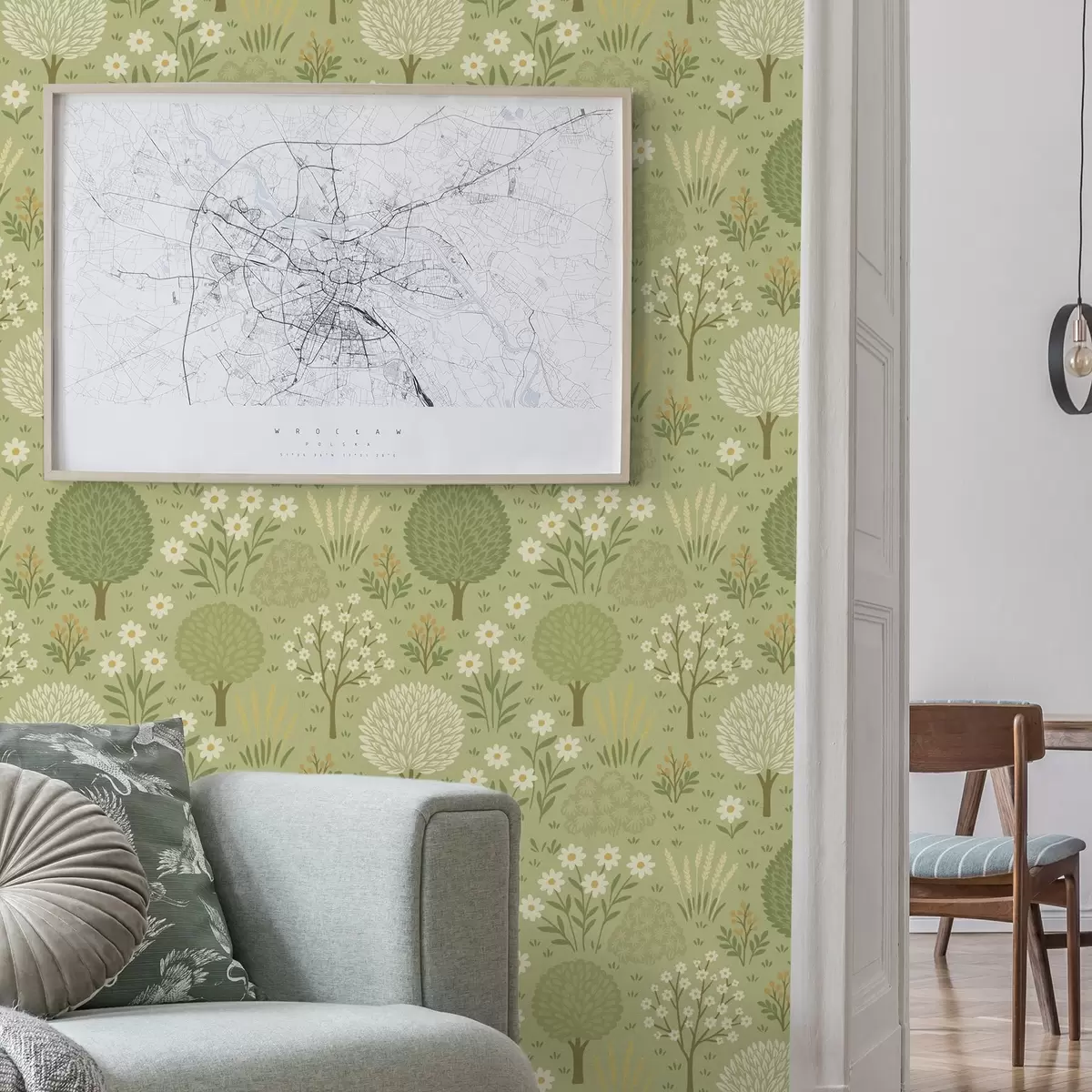 Behang Groene tuin voor kinderen: bomen, bloemen en tarwe Nr. a00586