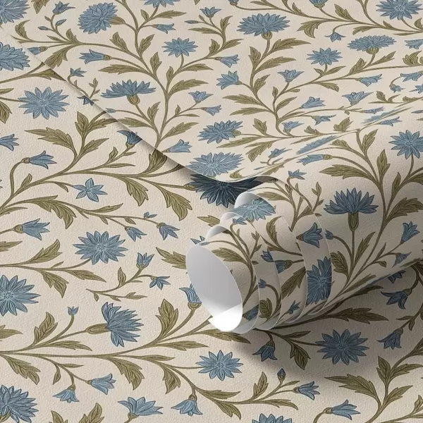 Behang Korenbloemen en scheuten op een beige achtergrond Nr. a00588