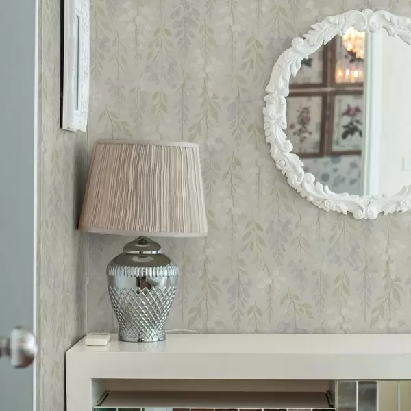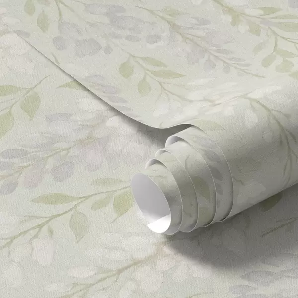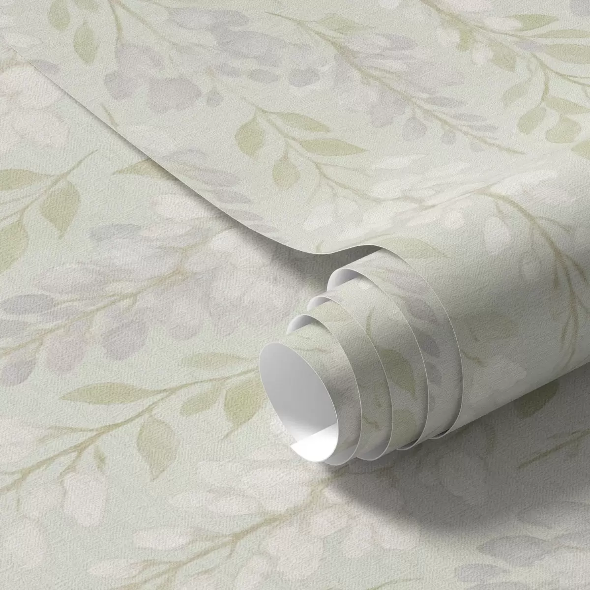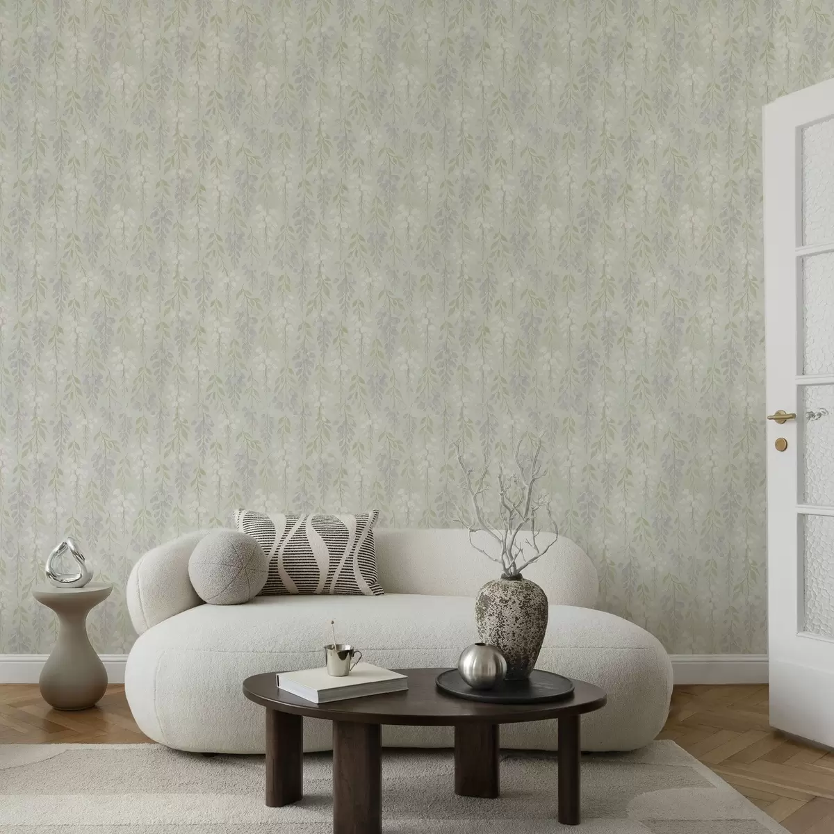 Behang Hangende lavendelblauwe blauweregen op een mintgroene achtergrond Nr. a00593