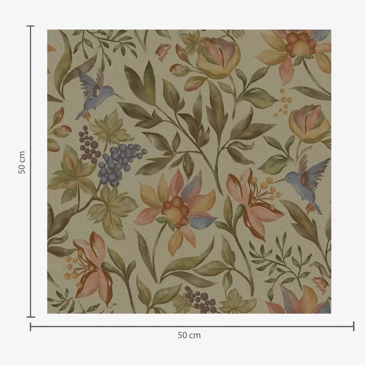 Behang Vintage bloemen en vogels met druiven op een olijfgroene achtergrond Nr. a00594