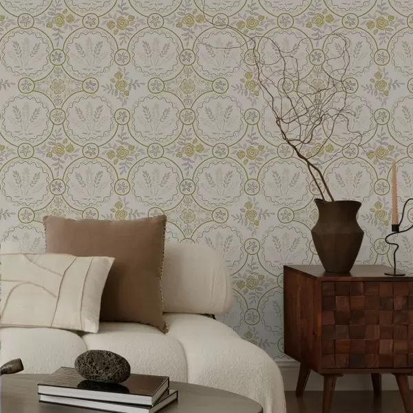 Behang Retro ornament met tarwe en rozen Nr. a00595