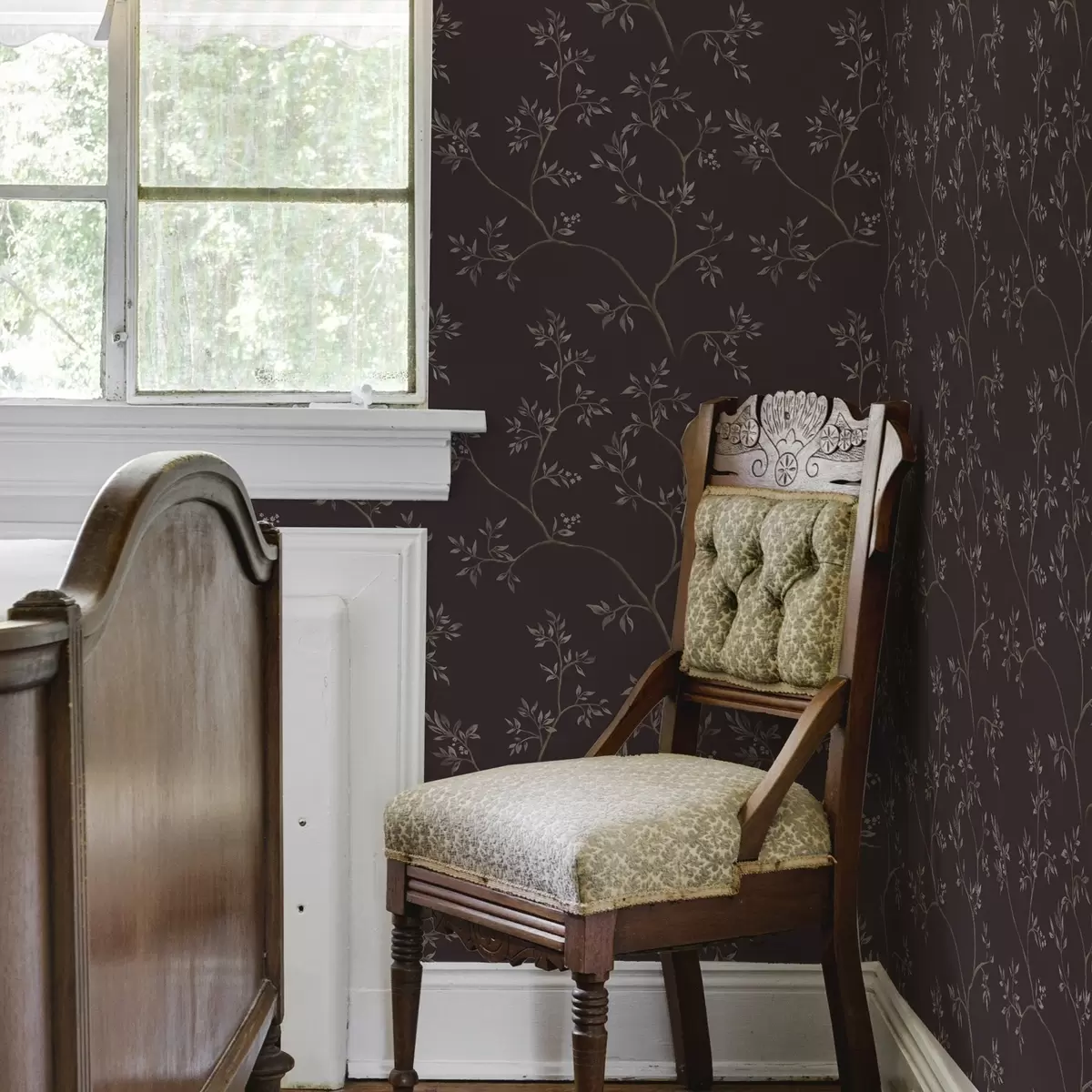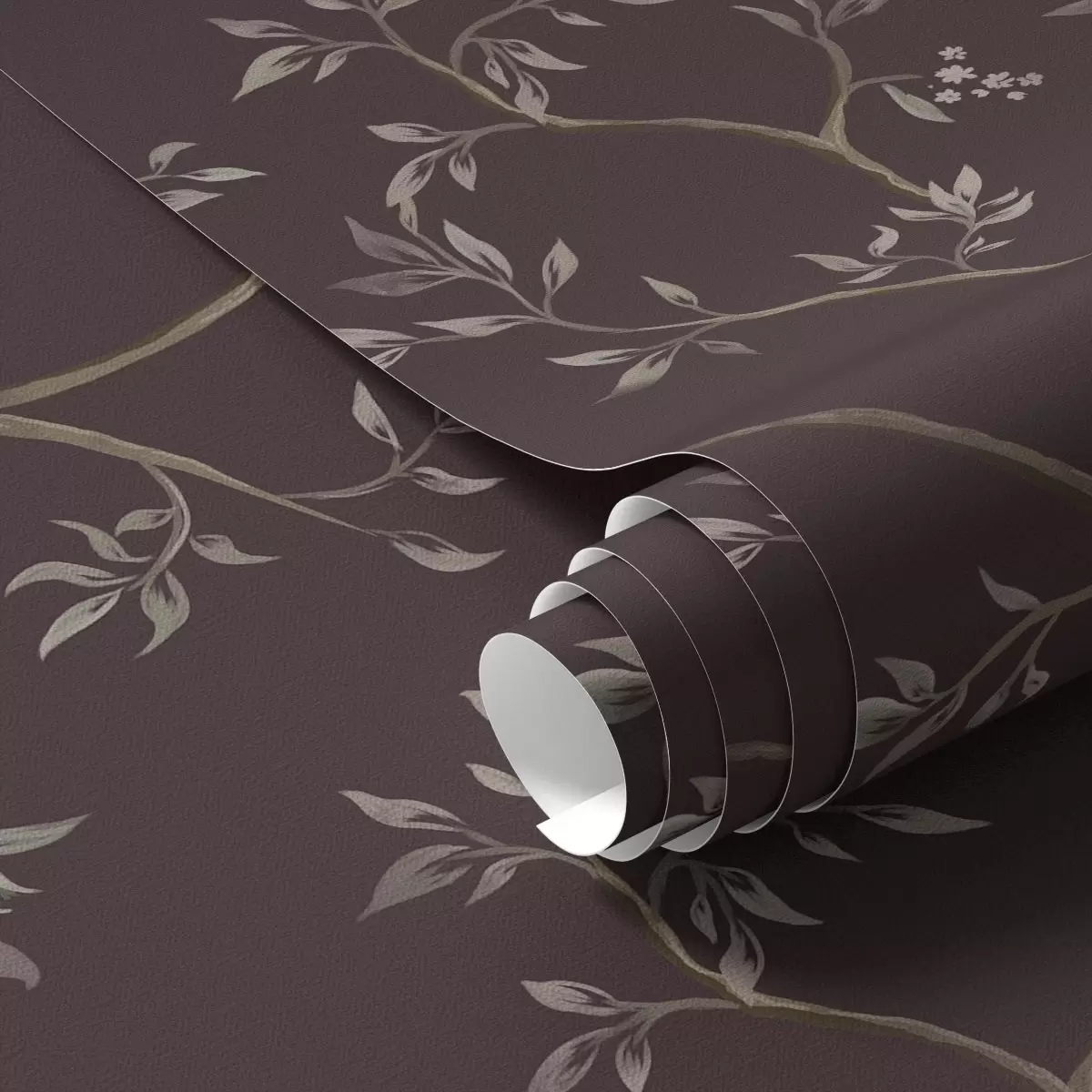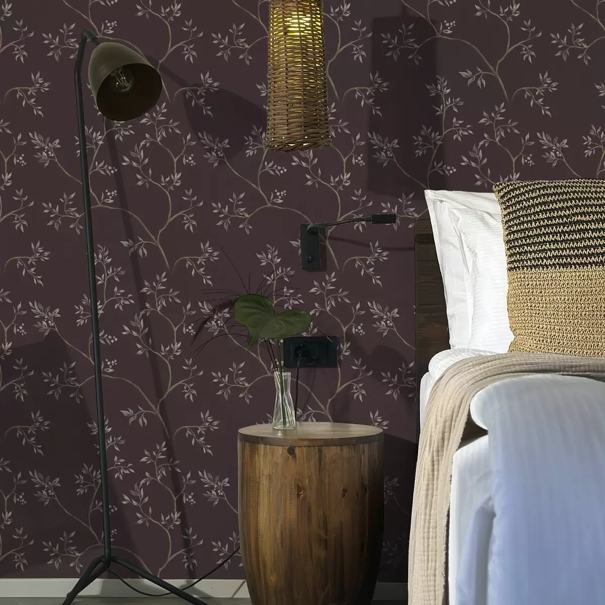 Behang Delicate bladrijke takken op een rijke pruimenachtergrond Nr. a00597v2