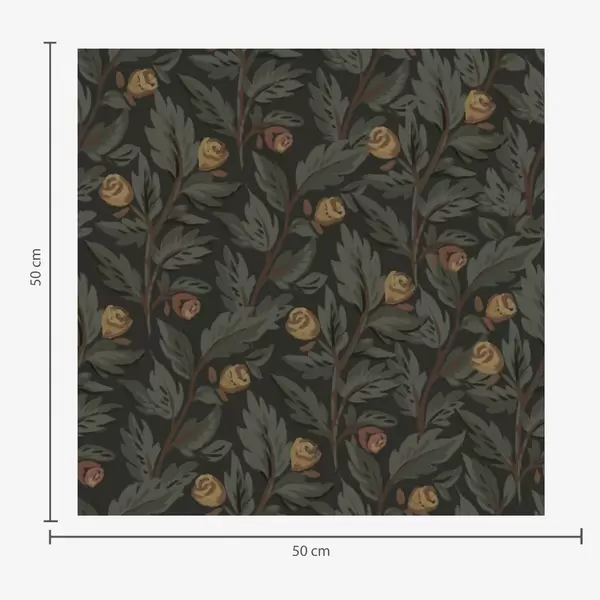 Behang Donker bloemenpatroon met gele knoppen en bladeren Nr. a00598