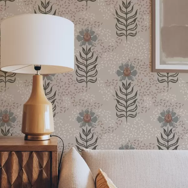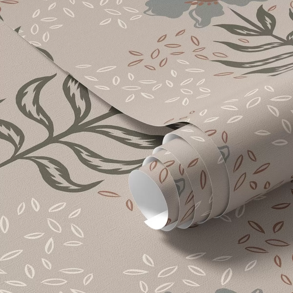 Behang Gestileerde bloemen en zaden op warm beige Nr. a00604