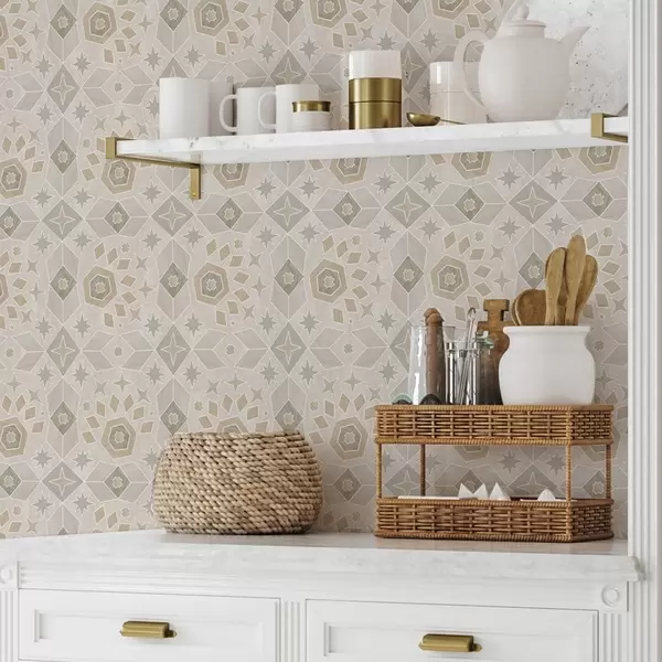 Behang Geometrisch mozaïekpatroon in warme beige tinten Nr. a00606