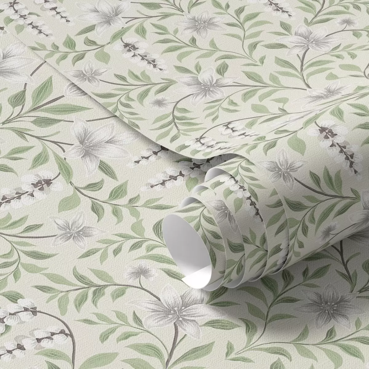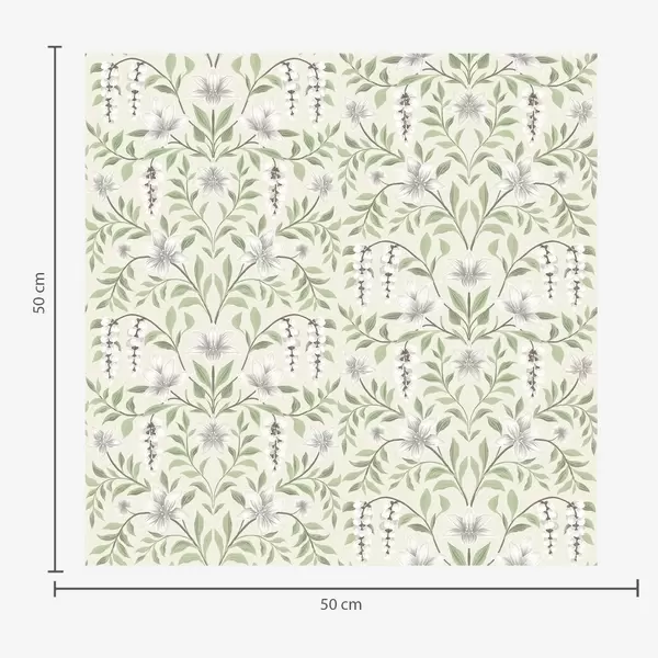 Behang Licht wijnrankornament met witte bloemen, symmetrisch Nr. a00609
