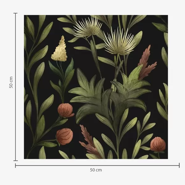 Behang Hoog gras en bloemen op zwarte, gedetailleerde print Nr. a00620