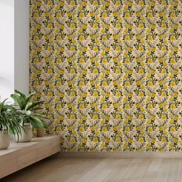 Behang Gele bloemen in verticale slingers op een crèmekleurige achtergrond Nr. a00632