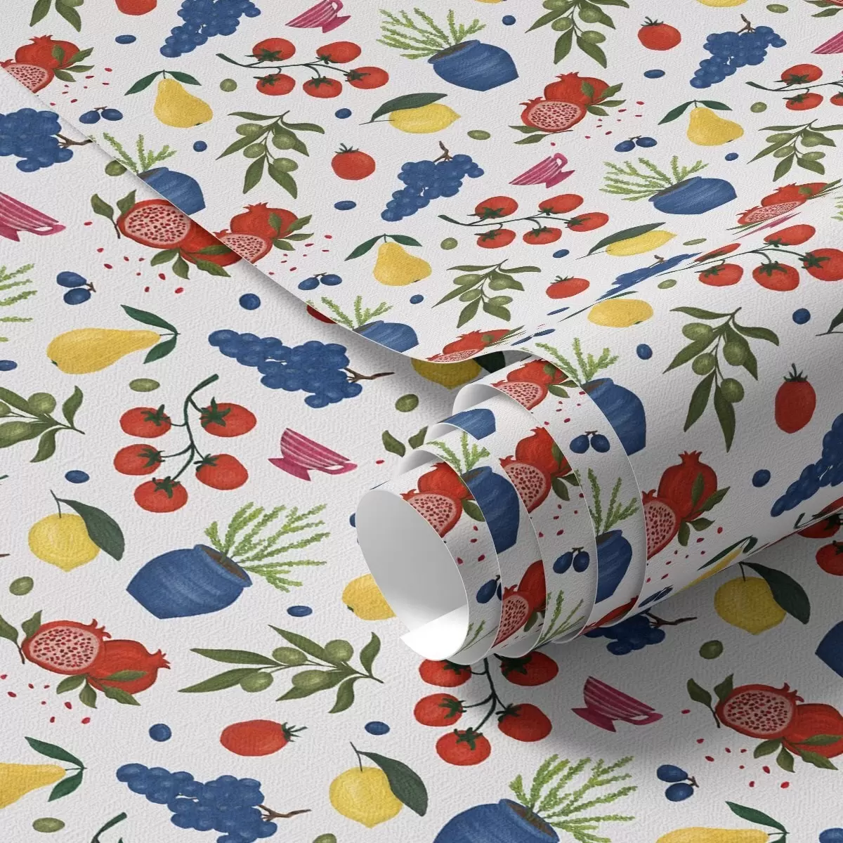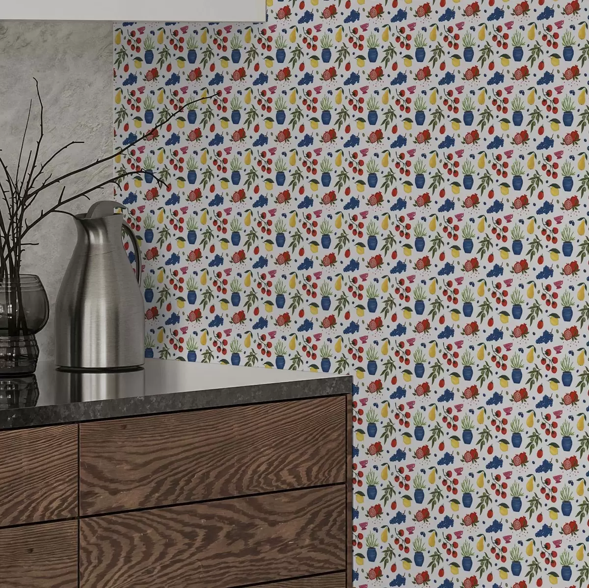Behang Helder fruit-botanisch patroon op een witte achtergrond Nr. a00637v1