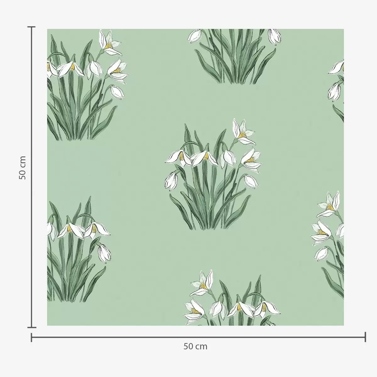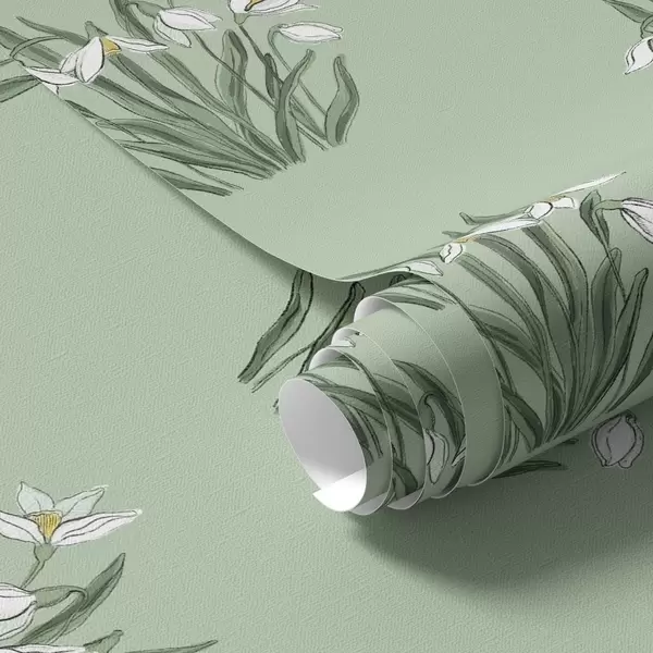 Behang Sneeuwklokjes met groene bladeren op een zachtgroene achtergrond Nr. a00651v4