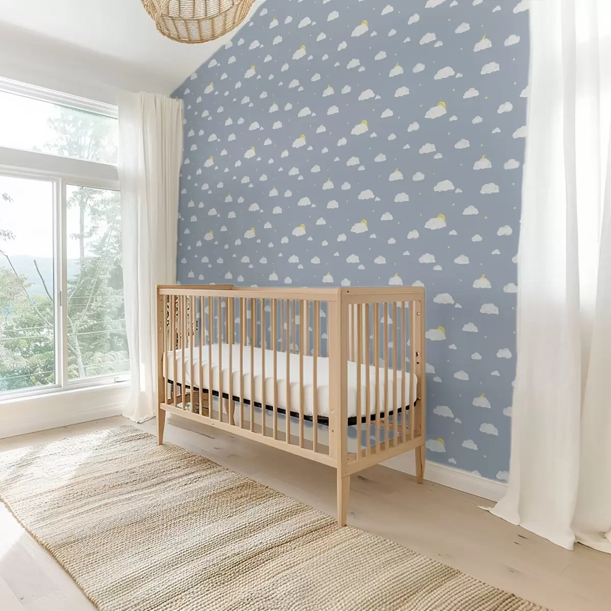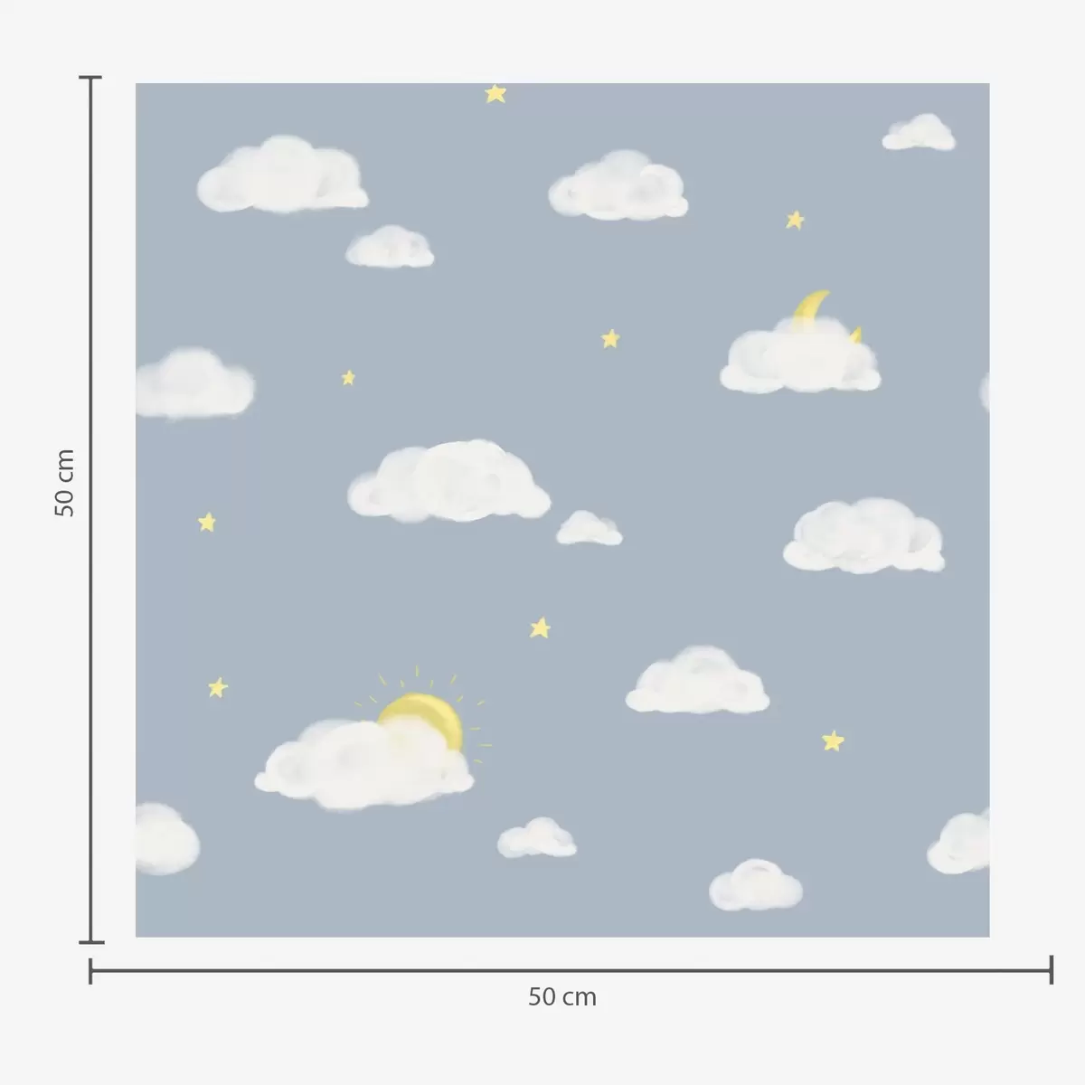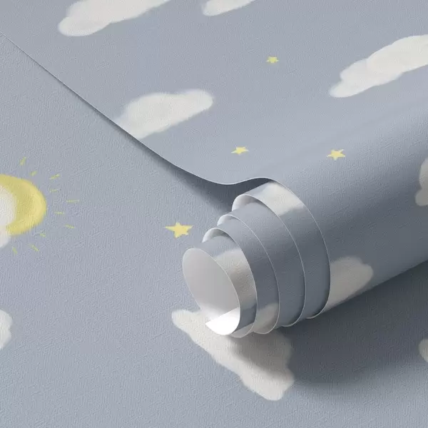 Behang Zachte wolken, sterren en zon op een blauwe achtergrond Nr. a00652