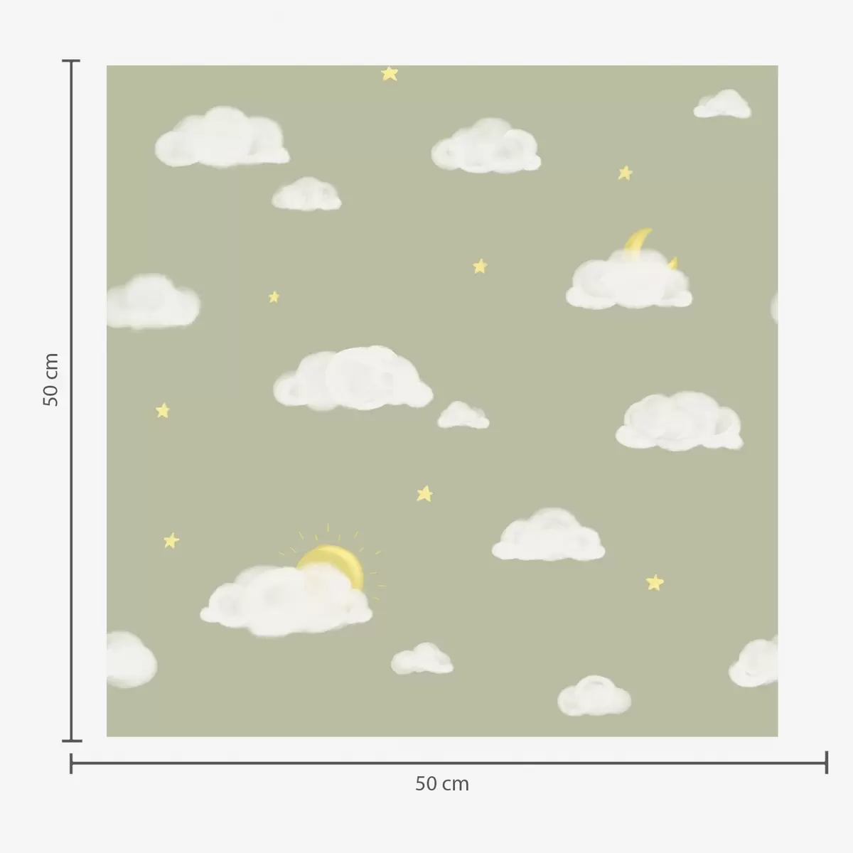 Behang Zachte wolken, sterren en zon op een groengrijze achtergrond Nr. a00652v1