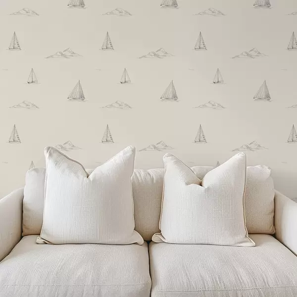 Behang Schets van jachten en eilanden, warme crèmekleurige achtergrond Nr. a00654v1