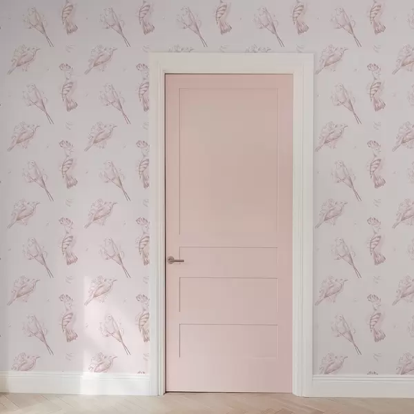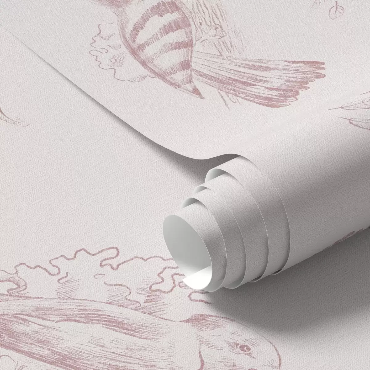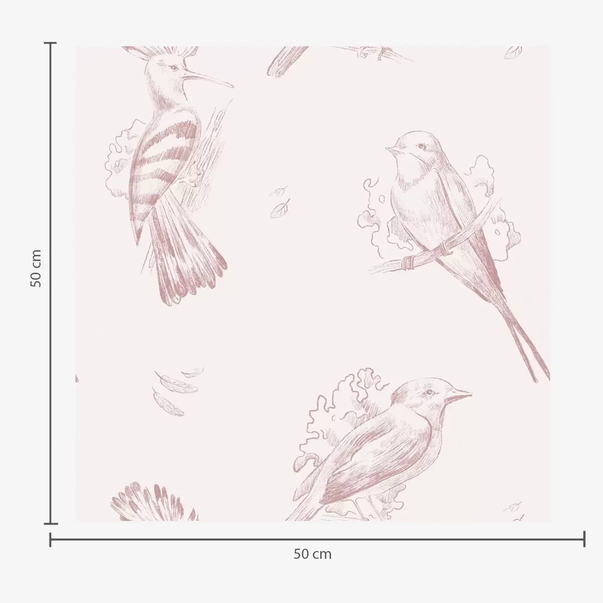 Behang Vogeltoile: schetsvogels, zachtroze achtergrond Nr. a00656
