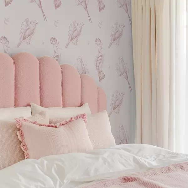 Behang Vogeltoile: schetsvogels, zachtroze achtergrond Nr. a00656