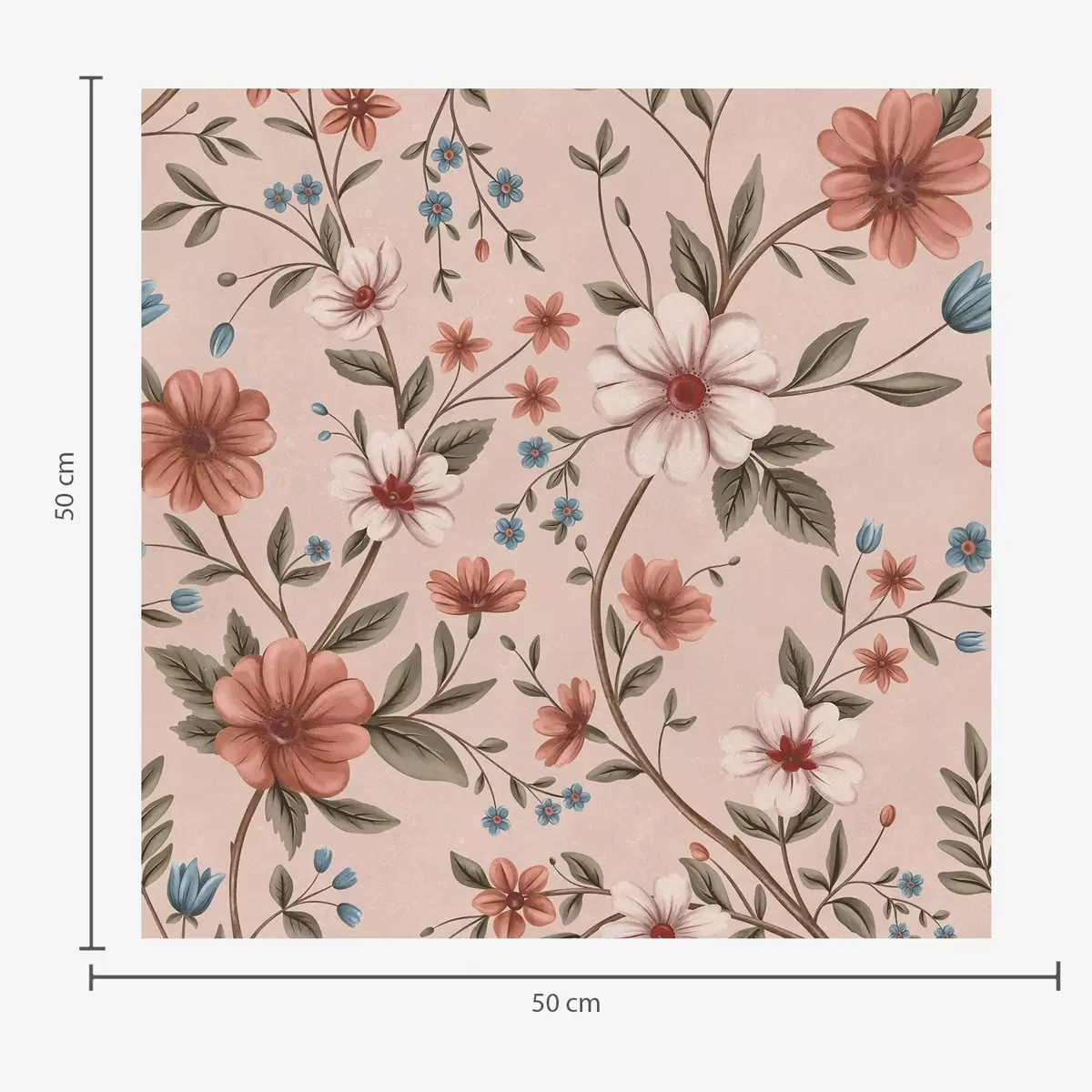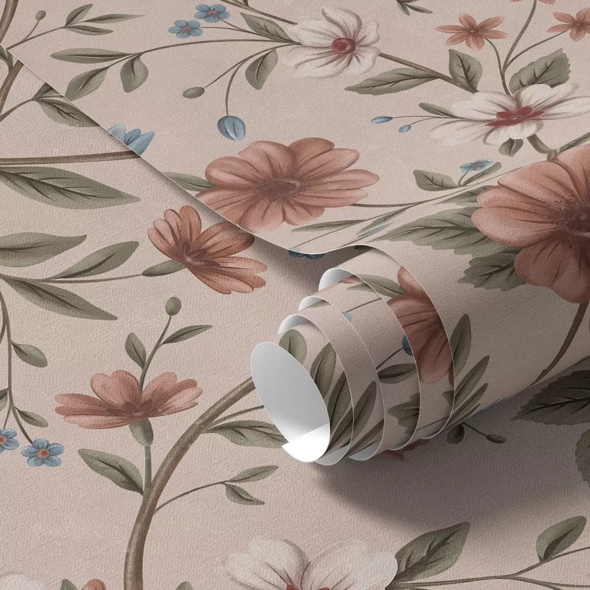 Behang Roze-koraalkleurige bloemen en bladeren op oudroze Nr. a00667