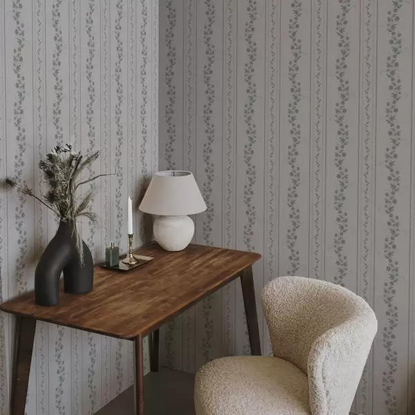 Behang Fijne strepen met lavendelbloemen, vintage Nr. a00671