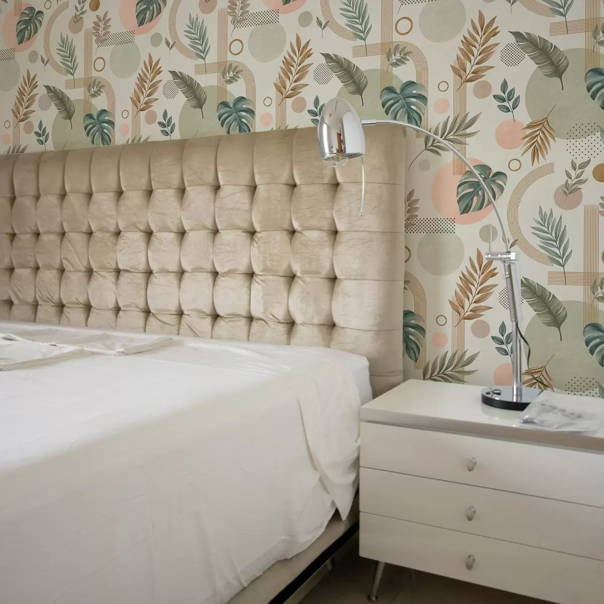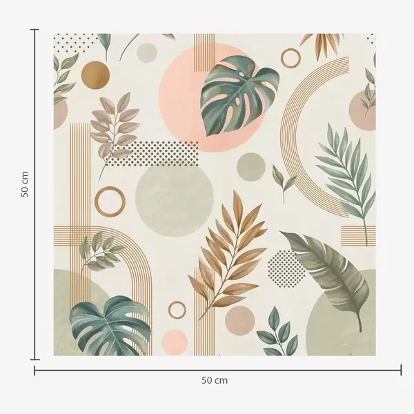 Behang Bladeren en geometrische vormen in rustige, warme tinten Nr. a00677