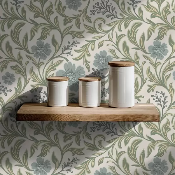 Behang Saliegrijs bloemenornament op een lichte achtergrond Nr. a00712